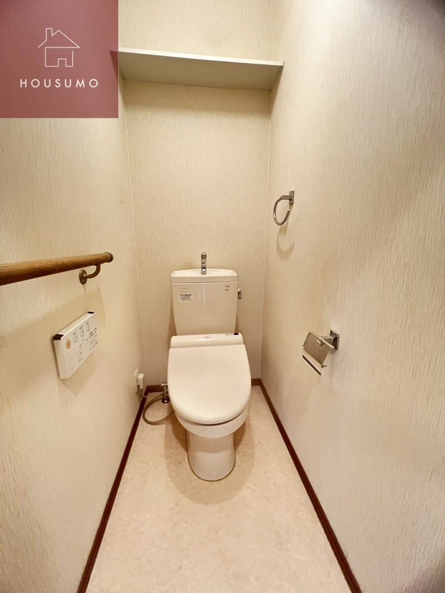 トイレは間取りの中心に位置しているので、各部屋からのアクセスが良好なので、来客時も家族のプライバシーを保ちやすく、日常使いにも配慮された配置です。温水洗浄便座を完備しているので、冬でもひんやりせず、快適に使用できるのが嬉しいポイントです◎