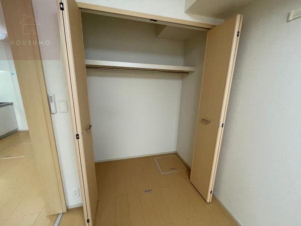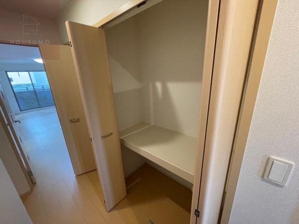 洋室には奥行きのあるクローゼットが完備されており、衣類や季節用品、カバン類などをしっかり収納可能です。さらに廊下にも押し入れタイプの収納スペースがあり、掃除用具や日用品、かさばる荷物も整理しやすく設計されています。これにより、一人暮らしはもちろん、同棲で二人分の荷物があっても十分対応でき、生活空間を広く使えるのが大きな魅力です。