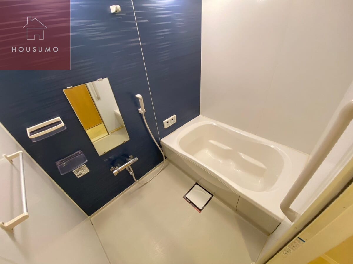 バスルームはシンプルでブルーのアクセントウォールが映える無駄のない造りになっており、毎日の入浴を快適にサポートしてくれます。掃除もしやすく、清潔感を保ちやすい点が魅力。浴槽はご家族でもちょうど良いサイズ感で、肩までしっかり浸かれるため、日々の疲れを癒すリラックスタイムを確保できます。