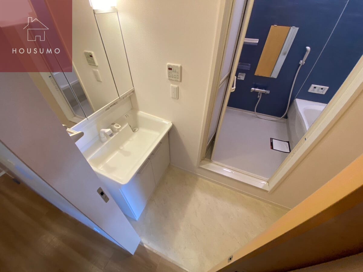 脱衣室には独立洗面台を完備されているので、朝の身支度や帰宅後の手洗い、夜のスキンケアタイムまで、使い勝手がよくストレスのない設計です。鏡裏収納付きですっきりとした清潔感ある見た目に◎独立洗面台の反対にはスペースがあるので、タオルなどのリネン類を収納する家具も設置可能です。脱衣室がしっかりと区切られているので、来客時のプライバシーもしっかりと確保できます。