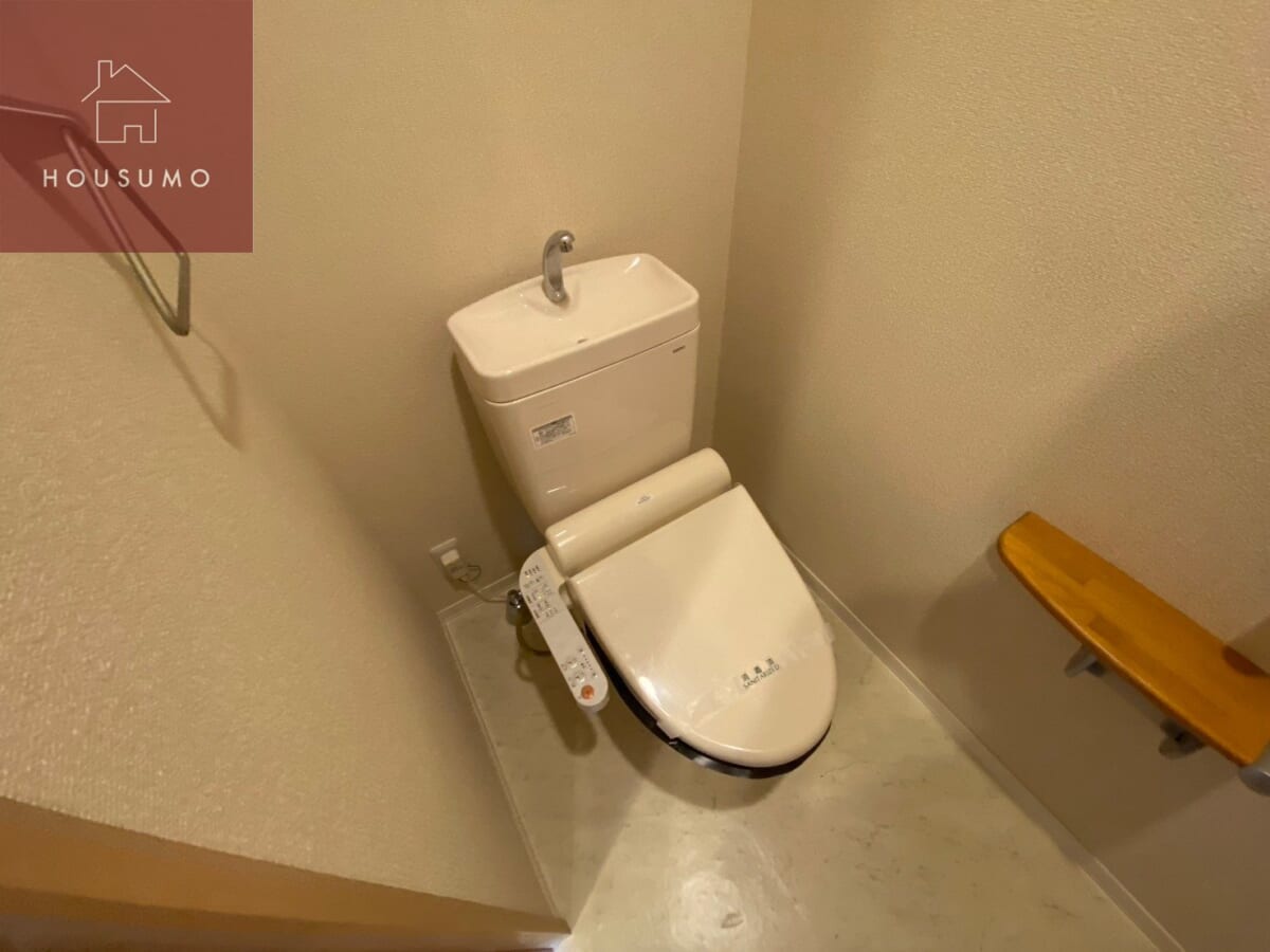 独立タイプのトイレは、温水洗浄便座付きで機能性も高く、清潔感のある快適な空間に仕上がっています。トイレットペーパーホルダーの上部にはちょっとした小物が置ける棚板付きなので、芳香剤やスマホ、ポーチなどをサッと置けて、見た目にもすっきり整います。生活の中の“ちょっと便利”が、しっかり考えられたポイントです。