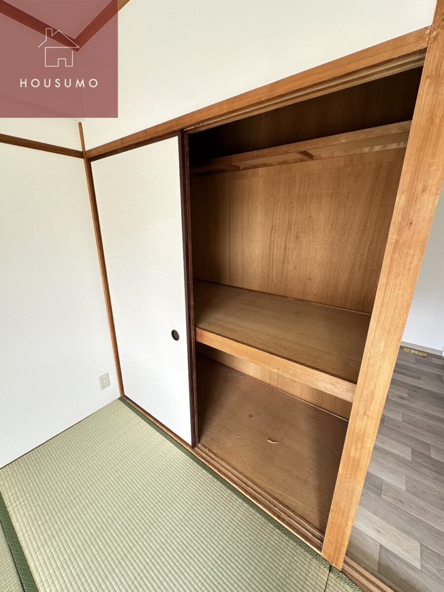 各和室には、昔ながらの押し入れタイプの収納を完備しているので、布団や季節ごとの衣類、こたつなどの大きめの荷物もすっきりと片付きます。奥行きがしっかりあるため、収納ボックスやケースを組み合わせれば、見た目も整った使いやすい空間に。和室の雰囲気に馴染む木目調の引き戸で、生活感をさりげなく隠しながら心地よい和の空気を保てます。