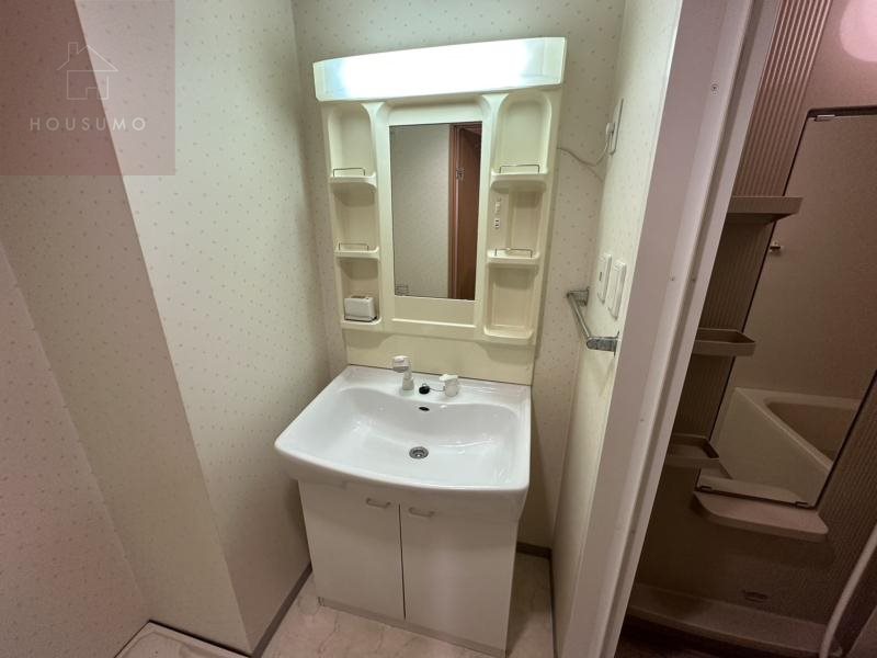脱衣室には洗濯機置き場と独立洗面台が備わっており、ワンルームながらも使い勝手の良い設計が魅力です。朝の身支度や夜のスキンケアもゆったり行える広さで、清潔感のある空間が保たれています。洗濯動線もスムーズで、バスルームとの行き来がしやすく、日々の家事が効率的にこなせます。ひとり暮らしでも快適に過ごせるよう配慮された間取りがうれしいポイントです。