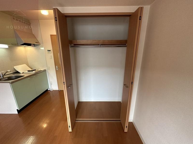 洋室にはクローゼットが設置されており、衣類や小物を整理整頓しやすく、生活空間を広く使える設計です。ひとり暮らしに必要な荷物を十分に収納できるサイズ感で、季節ごとの衣替えや趣味のアイテムもスッキリ片付けられます。限られたスペースでも収納力を確保しているため、快適で整った暮らしをサポートしてくれます。