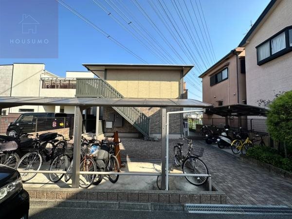 アパートの前には自転車・バイク置き場がしっかり確保され、屋根付きのため、雨の日でも大切な愛車を安心して停められるのが嬉しいポイント。通学や通勤で自転車やバイクを利用する方にも便利で、日常の移動がスムーズになる快適な環境です◎
