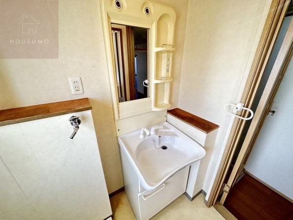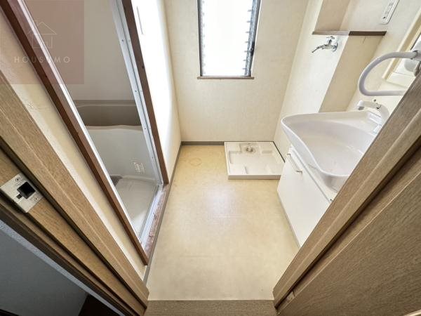 脱衣室には小窓が設けられており、自然光と通風を確保できる快適な空間です。湿気がこもりにくく、洗濯や入浴後も爽やかに保てます。洗濯機置き場と独立洗面台が並んで設置されており、朝の身支度や洗濯作業がスムーズに行えます。独立洗面台はシンプルながら収納スペースも備えており、歯ブラシや化粧品などの小物も整理しやすく、機能的で使い勝手の良い脱衣室です。