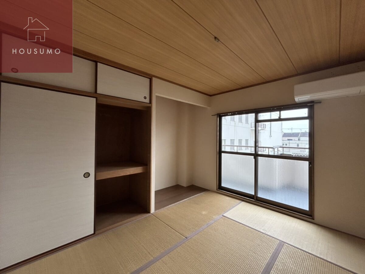 和室には押し入れ収納が設置されており、衣類や小物を整理整頓しやすく、生活空間を広く使える設計です。必要な荷物を十分に収納できるサイズ感で、季節ごとの衣替えや趣味のアイテムもスッキリ片付けられます。限られたスペースでも収納力を確保しているため、快適で整った暮らしをサポートしてくれます。