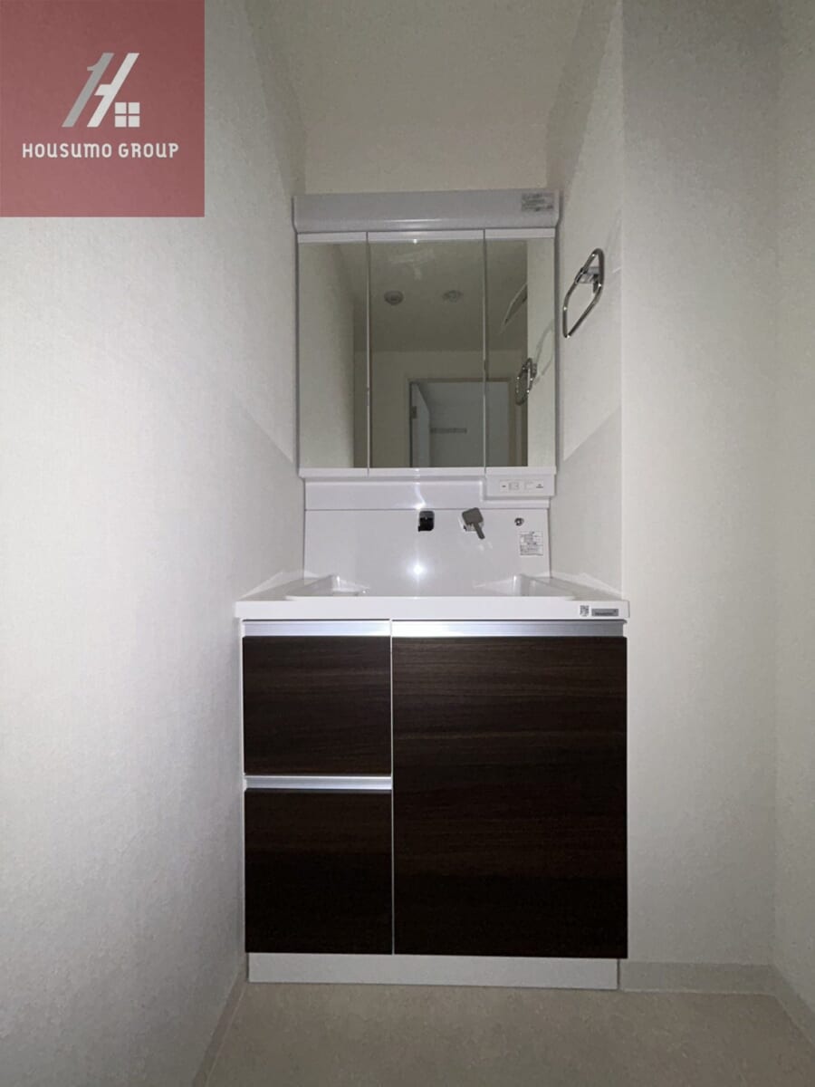脱衣室には独立洗面台と洗濯機置き場を完備しており、朝の身支度や入浴後の動線がスムーズで、家族が同時に使っても快適に過ごせます。小さなお子様がいるご家庭でも、洗面から洗濯、入浴の流れが一か所で完結するため安心で、水まわりを効率的にまとめた設計は、毎日の家事の時短にもつながります。浴室には浴室乾燥機能もついているので、雨の日も乾かすことができるので快適でストレスなく日常家事がこなせます◎