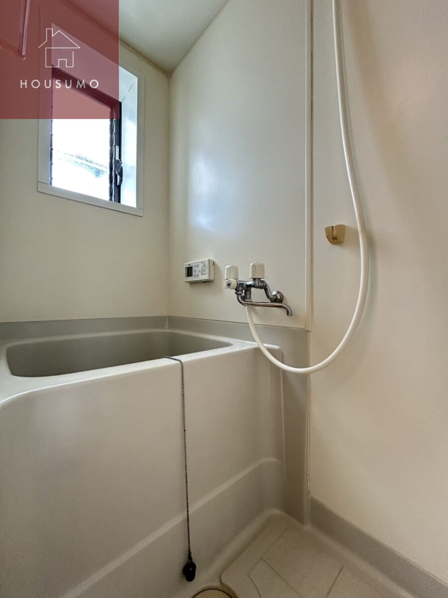 バスルームは無駄を抑えたコンパクトな造りで、日々のお手入れがしやすい点がポイントです。サッと洗いやすい壁面や浴槽は、忙しい毎日でも清潔をキープしやすく、帰宅後のリラックスタイムにぴったり。シャワー派にも湯船派にも使い勝手が良いサイズ感で、居室からもキッチンからも移動しやすい動線が考えられた配置となっています◎