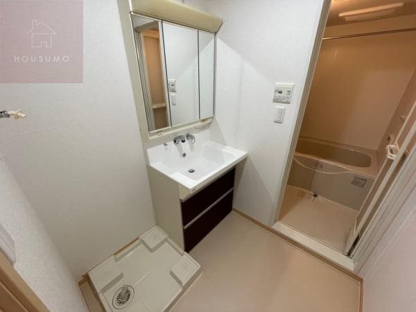 脱衣室には独立洗面台が設けられており、朝の支度や帰宅後の身だしなみを整える時間が快適に。鏡裏収納がしっかり確保されているため、スキンケア用品やヘアセット道具、日常的に使う小物類をすっきりと隠して置けます。洗面台周りに物が出っぱなしにならないので、毎日使う場所なのに自然と清潔感がキープできる点が魅力です。生活感を抑えつつ“自分のための身支度スペース”をつくりたい方にぴったりの仕様です◎
