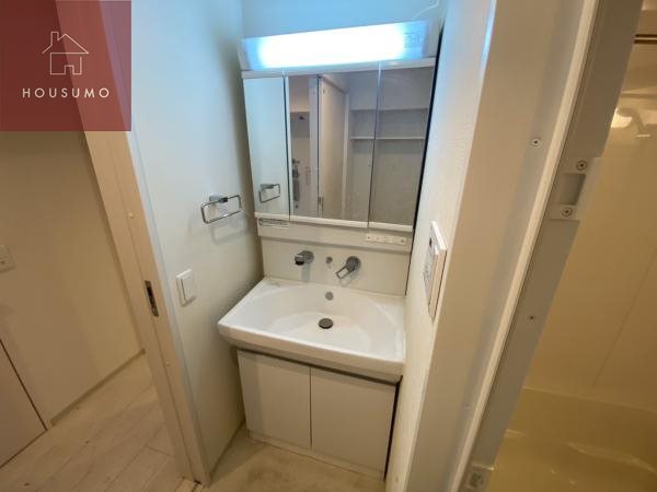 脱衣室には、独立洗面台と洗濯機置き場が横並びで配置されており、朝の支度も洗濯も“その場で完結”できる使い勝手の良い空間です。動線が短く、洗濯物の予洗いから洗濯機へ移す流れが非常にスムーズ。忙しい日でもムダな動きがなく、家事効率をしっかり支えてくれます。独立洗面台は、身支度に必要なアイテムをまとめて置けるため、生活リズムを整えたい方にもおすすめです。シンプルながらも必要な機能が揃った脱衣室は、一人暮らしはもちろん、同棲生活でも“自然と暮らしやすい”と感じられる実用的なスペースです◎