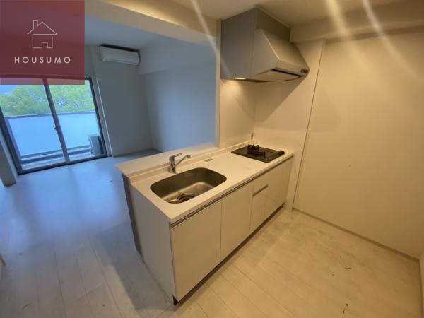 キッチンは使い勝手の良い2口ガスコンロ付きのカウンターキッチン。同時調理がしやすく、毎日の自炊はもちろん、作り置きや二人分の食事準備もスムーズに行えます。リビング側を向いたカウンター仕様のため、料理をしながら会話を楽しめるのも魅力のひとつ。食事の配膳や片付けがしやすく、同棲カップルや来客時にも活躍します。程よく生活感を抑えつつ、LDKとの一体感を保てる設計で、空間全体を広く感じさせてくれるキッチンです。