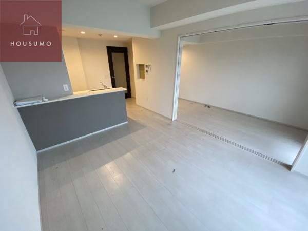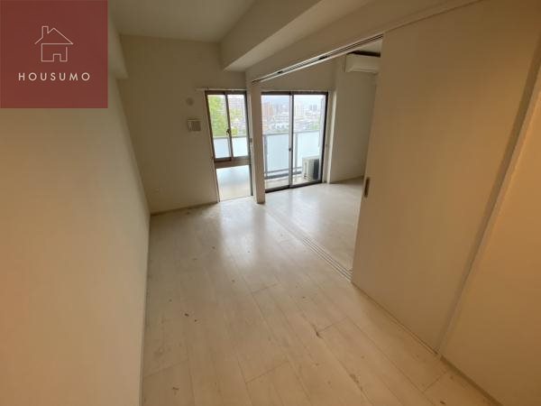 LDKは約11帖と、1LDKとしてはしっかり広さを確保。キッチンとリビング空間が緩やかに分かれており、食事スペースとくつろぎスペースを分けやすいレイアウトです。東向きのバルコニーに面しているため、朝から自然光が入り、明るく開放的な印象。ソファやダイニングテーブルを置いても圧迫感が出にくく、在宅時間が長い方にも嬉しい空間です。洋室は寝室として使いやすい6帖サイズで、ベッドを置いても動線が確保しやすく、シンプルながら実用性の高い空間です。LDKと引き戸で仕切られているため、開ければ開放感のある一体空間として、閉めればプライベート空間として使い分け可能です◎