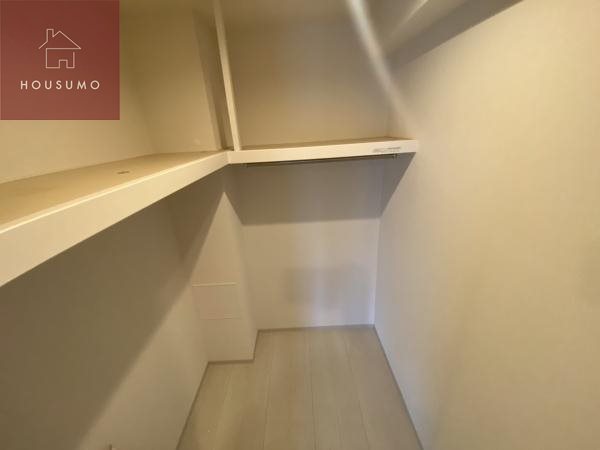 洋室にはウォークインクローゼット完備しているので、衣類をまとめて収納できる広さがあり、二人分の洋服や荷物も無理なく収まる容量が魅力です。ハンガー収納が中心のため、シーズンごとの衣替えもスムーズです。収納家具を最小限に抑えられることで、居室スペースを広く使える点も嬉しいポイントで、同棲スタート時はもちろん、荷物が増えがちな将来まで見据えた実用的な収納設計となっています。