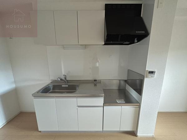 キッチンはシンプルで清潔感のあるデザインで、作業スペースとシンクがしっかり確保された使いやすいレイアウトです。上下収納付きのため、調理器具や食器をすっきり整理でき、生活感を抑えた空間を保てます。レンジフード付きで調理時のにおいや煙を軽減し、快適に料理ができる点も魅力です。LDKに面した配置で配膳や片付けがスムーズに行え、日常の家事効率を高めてくれます。一人暮らしから二人入居まで対応できる、実用性の高いキッチンスペースです。