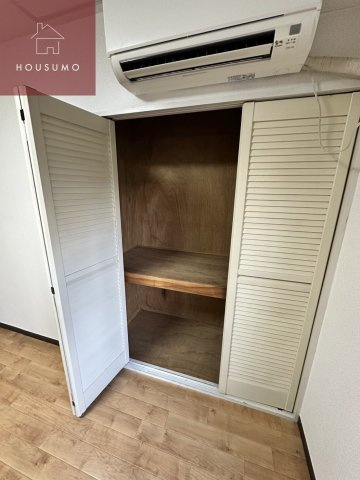 洋室に設置されたクローゼットは、中段に仕切りのある押し入れタイプで、寝具や季節家電なども効率よく収められる大容量サイズです。また、玄関横には天井付近まで高さのあるシューズボックスが完備されており、靴の多い方でも玄関まわりをスッキリと清潔感のある状態に保てます。お部屋の随所に配置された機能的な収納により、5.5帖の居住空間を最大限に広く活用できる、暮らし心地を重視した設計のお部屋です。