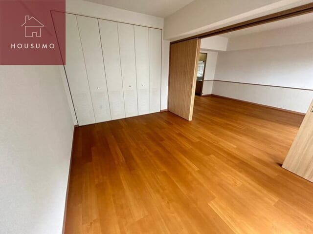 洋室はライフスタイルに合わせて柔軟に活用できる、ゆとりある設計が魅力です。LDKに隣接する洋室は大きな引き戸で仕切られており、開放することで一体感のある広々としたリビング空間としても使用可能です。壁面一面には白を基調とした大型の収納クローゼットが設置されており、衣類や日用品をたっぷりと保管できます。フローリングは温かみのある木目調で統一されており、どんな家具とも相性が良く、落ち着いたプライベートな雰囲気を演出してくれます。独立した居室としても機能するため、寝室や子供部屋、または在宅ワークのスペースとしても最適です。各お部屋に窓が配置されているため採光や通風も良好で、一日を通して心地よく過ごせる空間となっています。