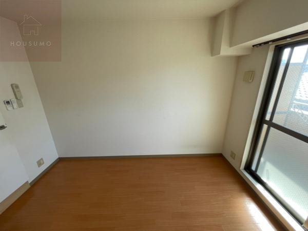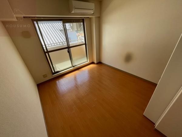 洋室は6.2帖の広さがあり、バルコニーに面した大きな窓から自然光がたっぷりと差し込む明るい空間です。室内は温かみのある木目調のフローリング仕様となっており、お好みの家具を自由に配置して自分だけのプライベート空間を作り上げることができます。壁面にはあらかじめエアコンが設置されているため、入居したその日から季節を問わず快適な室温で過ごせるのが大きな魅力です。照明器具も備え付けられており、夜間でも明るく落ち着いた雰囲気の中でリラックスした時間を過ごせる機能的な一室となっています。